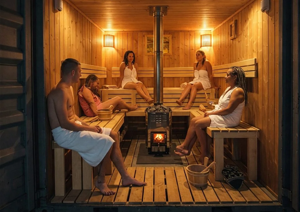 Converting a 20-foot shipping container into a sauna or spa unit is a popular trend in wellness tourism, glamping sites, and home retreats.