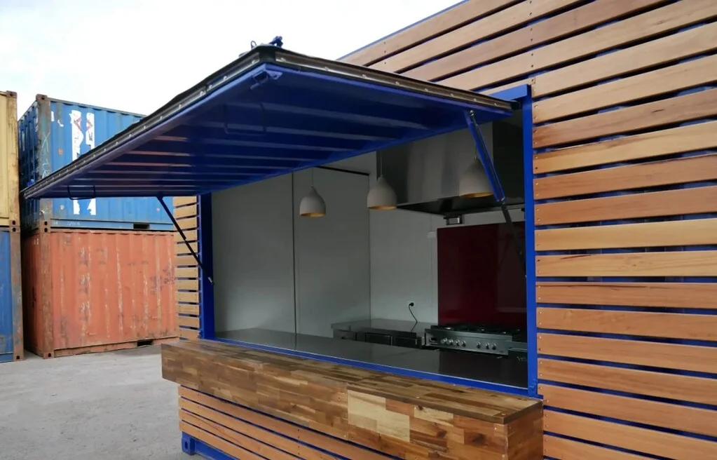 Shipping Container Cafe with Timber Facade